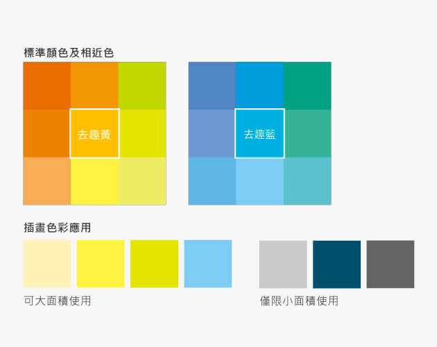 作為旅行的最佳夥伴,<去趣>熟知所有前往目的地的通行辦法,並持續增強旅遊知識中,絕對是旅人不可或缺的良師益友;Logo使用三角形視為start and play的象徵,以活力四射的藍黃配色為基礎,俏皮的雙眼充滿對旅程的期盼,享受湛藍天空、擁抱明媚陽光,旅行的開端便以愉悅鮮明的心情踏出第一步。