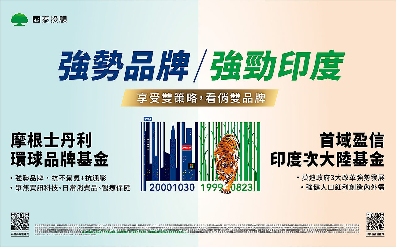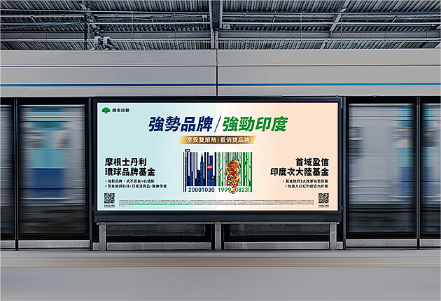向消費者推廣國泰投顧基金的強勢發展,視覺則分別用老虎以及城市代表該基金主要國家與廠牌,與簡潔扼要的市場說明,明確傳遞前景良好的未來。