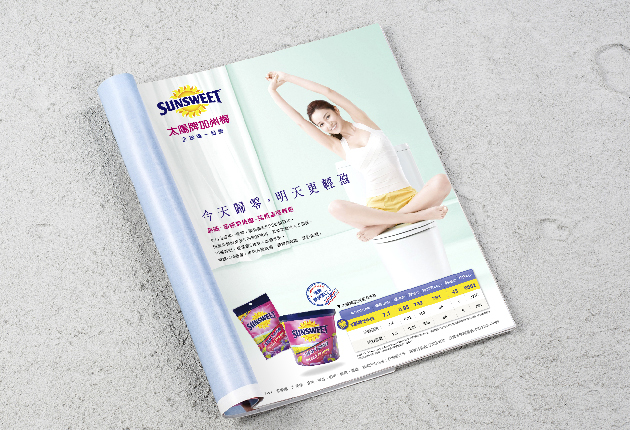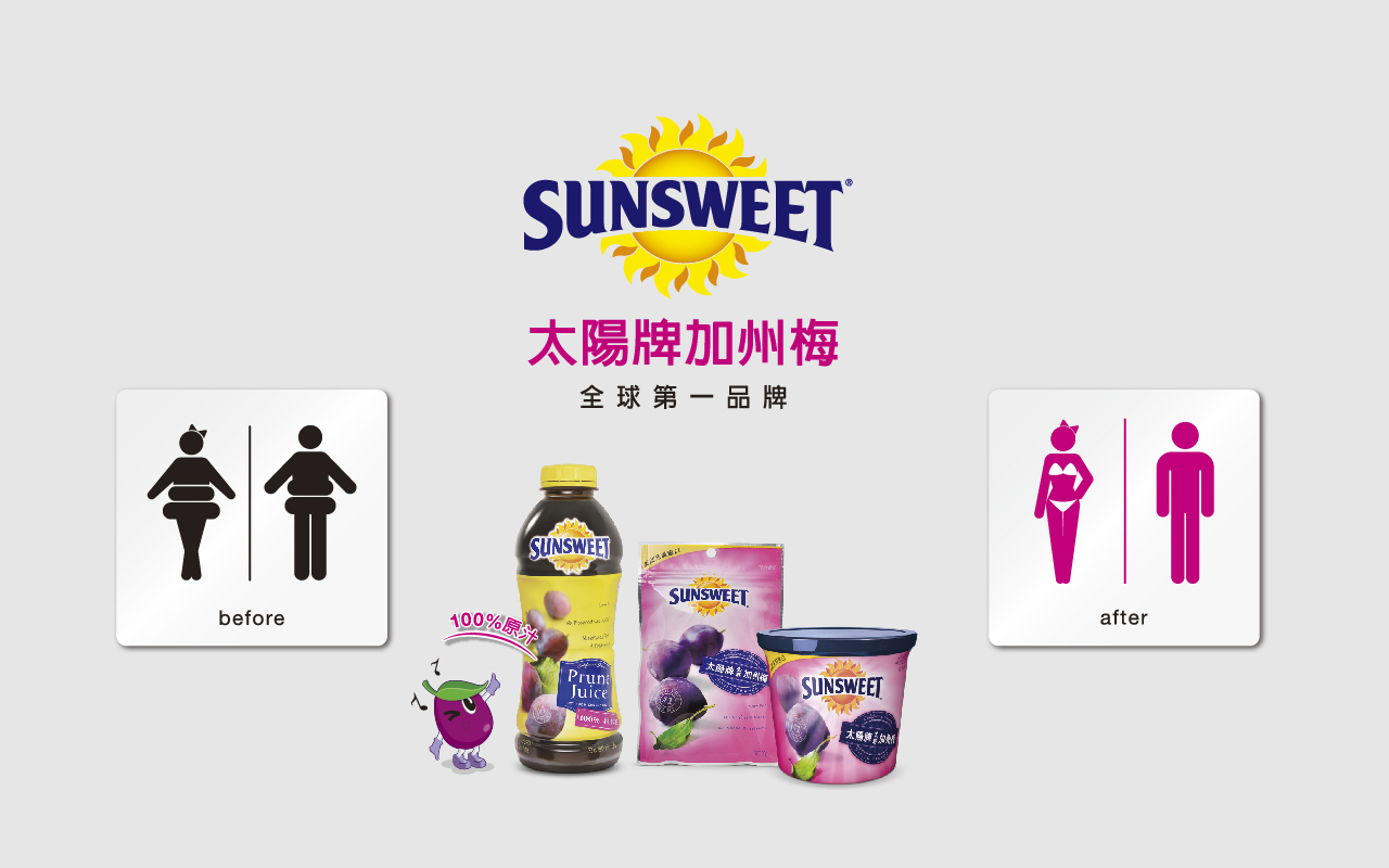 如何擴大產品的消費族群?是SUNSWEET的主要課題,從策略建議到主視覺的執行、媒體的創意、廣編稿撰寫,策略上將一般認知的好吃果乾,附加功能性,強打「嘴饞也能變窈窕」、「今天歸零,明天更輕盈」的概念,為SUNSWEET太陽牌加州梅連續三年創造知名度與銷售量。