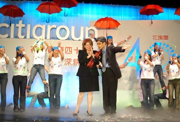 在舞台區部份,選擇具有歷史意義的圓山大飯店,節目邀請知性感性兼具的蔡康永為主持人,內容有蔡琴演唱40年來代表歌曲,及孔雀舞、舞龍舞獅等表演,現場提供的伴手禮則為壽桃禮盒,完全展現花旗銀行在地化的企圖與成果。