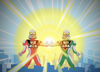 環球品牌基金、首源全球基建基金化身砝碼超人,攜手凝聚元氣彈,擊退通膨怪獸。象徵投資優質基金能在通膨時期找到生存之道。
