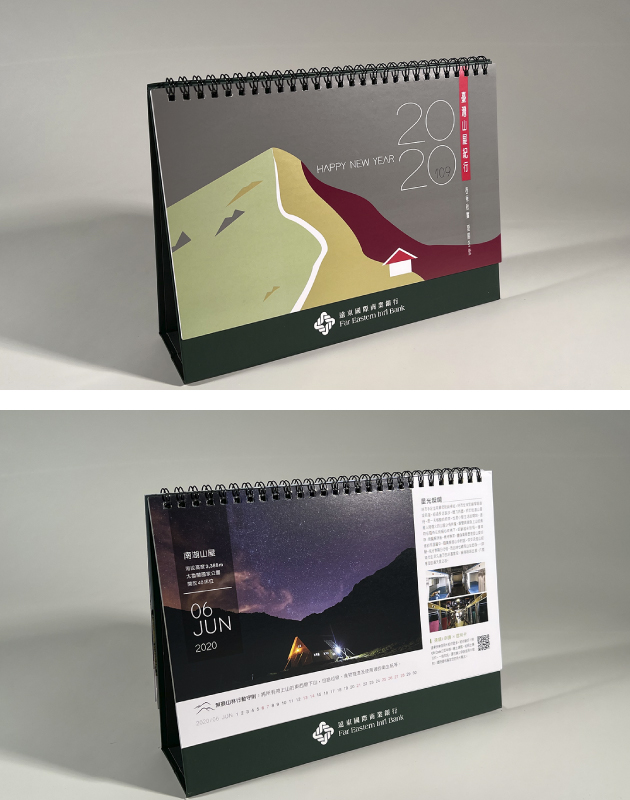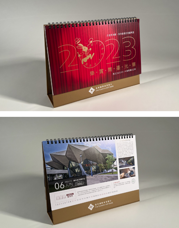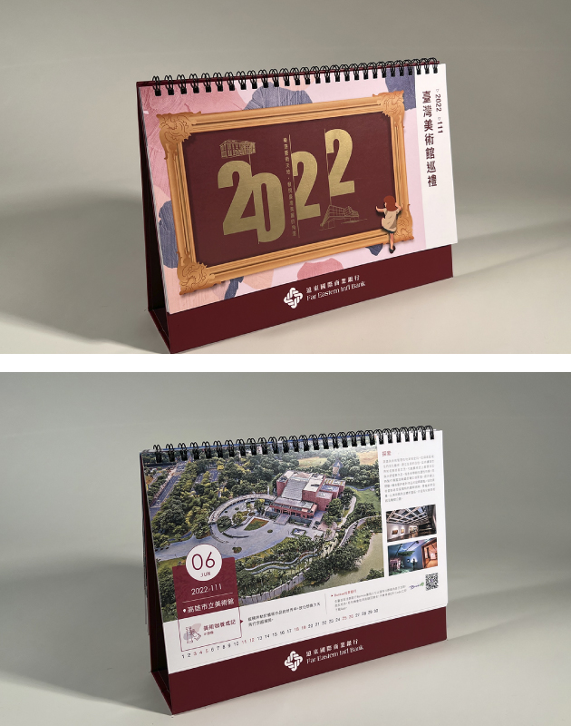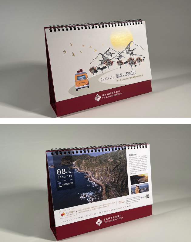 遠東商銀與台灣緊密連結,在每一年的掛曆、桌曆主題皆與這片土地相關,從「山屋」、「公路」、「美術館」「表演廳」,讓桌曆、掛曆陪伴的365天更加有趣。