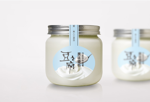 以黃豆的原生植物、以金色調包裝,帶出豆之府天然、一次萃取的特色,給予消費者真正濃純香、非基因改造的純手作豆漿。