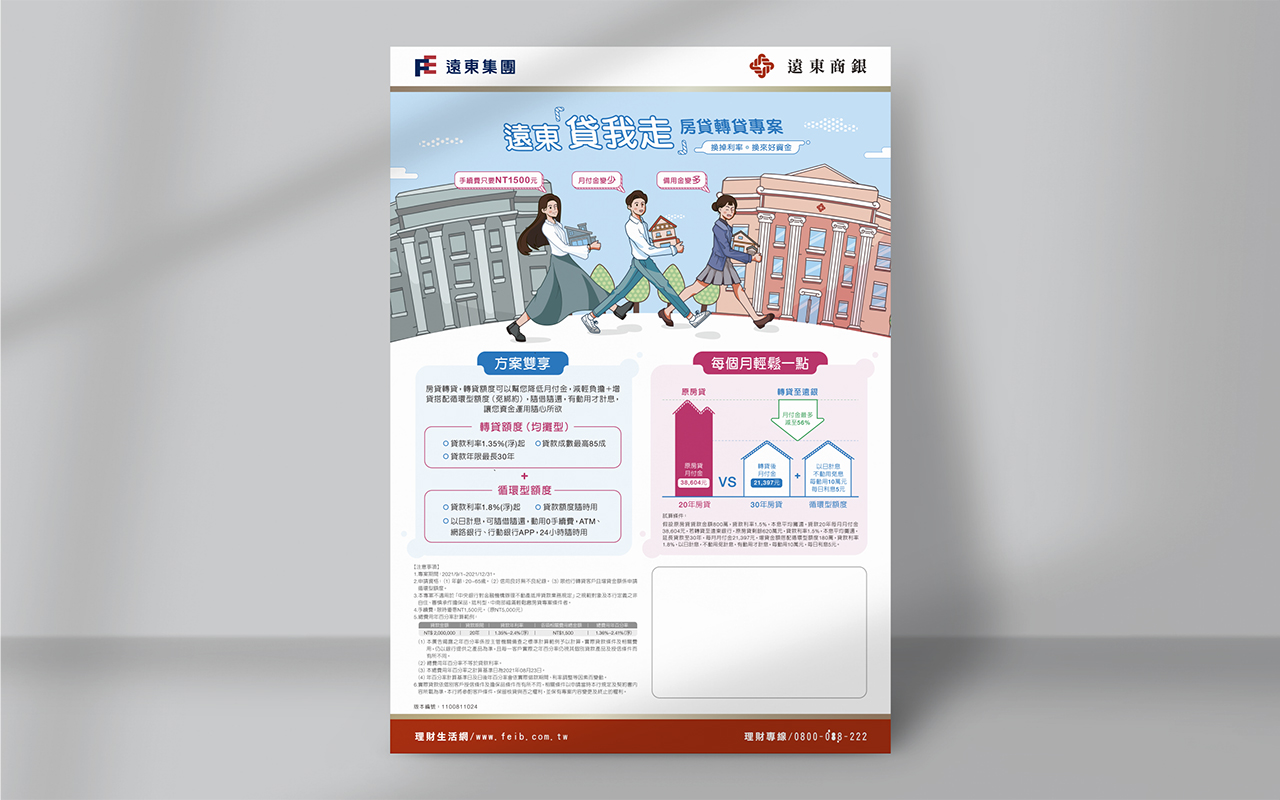 特別的韓漫風格人物,將房子輕巧帶著走,傳達轉貸遠銀的輕鬆不費力。