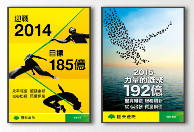 每年設定年度經營目標與主題,透過各式運動所需的努力與拚勁、振奮人心的熱血……;或是象徵團結凝聚、睿智與領導的畫面,設計成海報張貼於辦公室,時時鼓勵員工,為新的年度加滿油,朝目標前進。