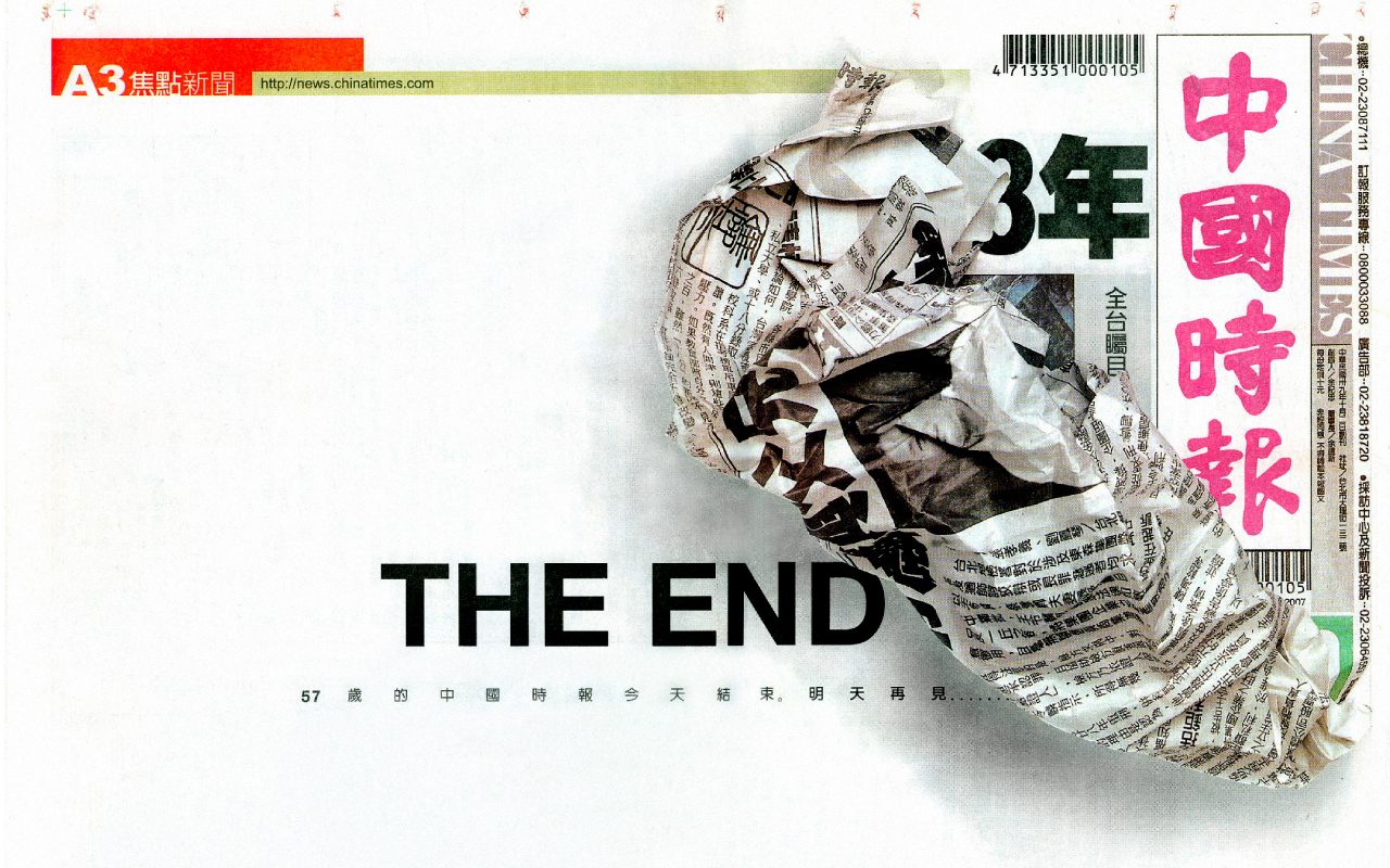 因應報紙新時代的來臨,中國時報從VI及版面著手改版,結合視覺導向的閱讀潮流,導入更豐富的圖像表現、具有一致性的視覺、統一標準的編排規範,來提升閱報者的閱讀體驗。改版前一日印象強烈的頭版廣告,宣告嶄新的中國時報即將問世;登場後一系列呼應看報習慣的創意廣告,讓中國時報的全新面貌更深植人心。