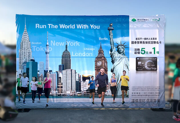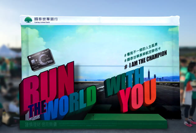 每年10月下旬,由長榮航空主辦的路跑活動,國泰世華長榮聯名卡皆會贊助活動攤位,米開蘭協助客戶進行攤位佈置,包含視覺發想,木作拍照背板、truss架帆布背板、活動道具製作,進退場的安排等協助。