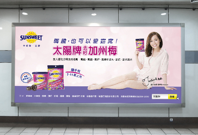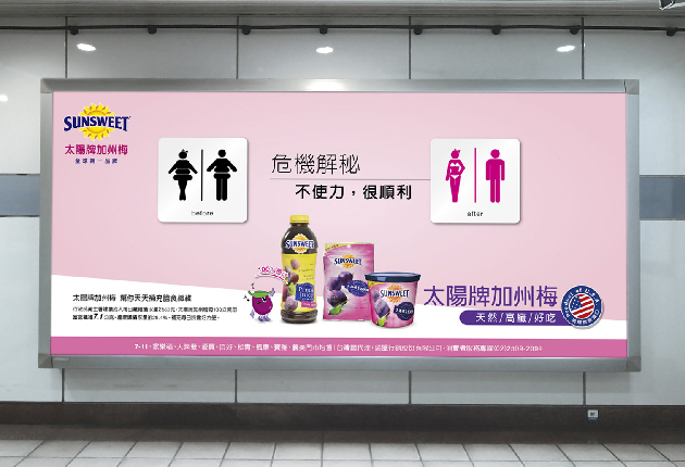如何擴大產品的消費族群?是SUNSWEET的主要課題,從策略建議到主視覺的執行、媒體的創意、廣編稿撰寫,策略上將一般認知的好吃果乾,附加功能性,強打「嘴饞也能變窈窕」、「今天歸零,明天更輕盈」的概念,為SUNSWEET太陽牌加州梅連續三年創造知名度與銷售量。