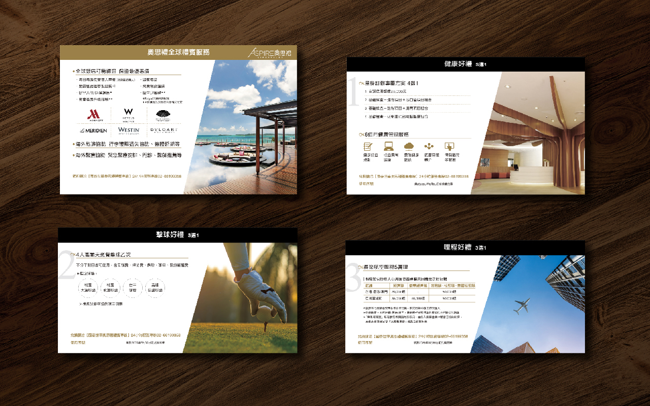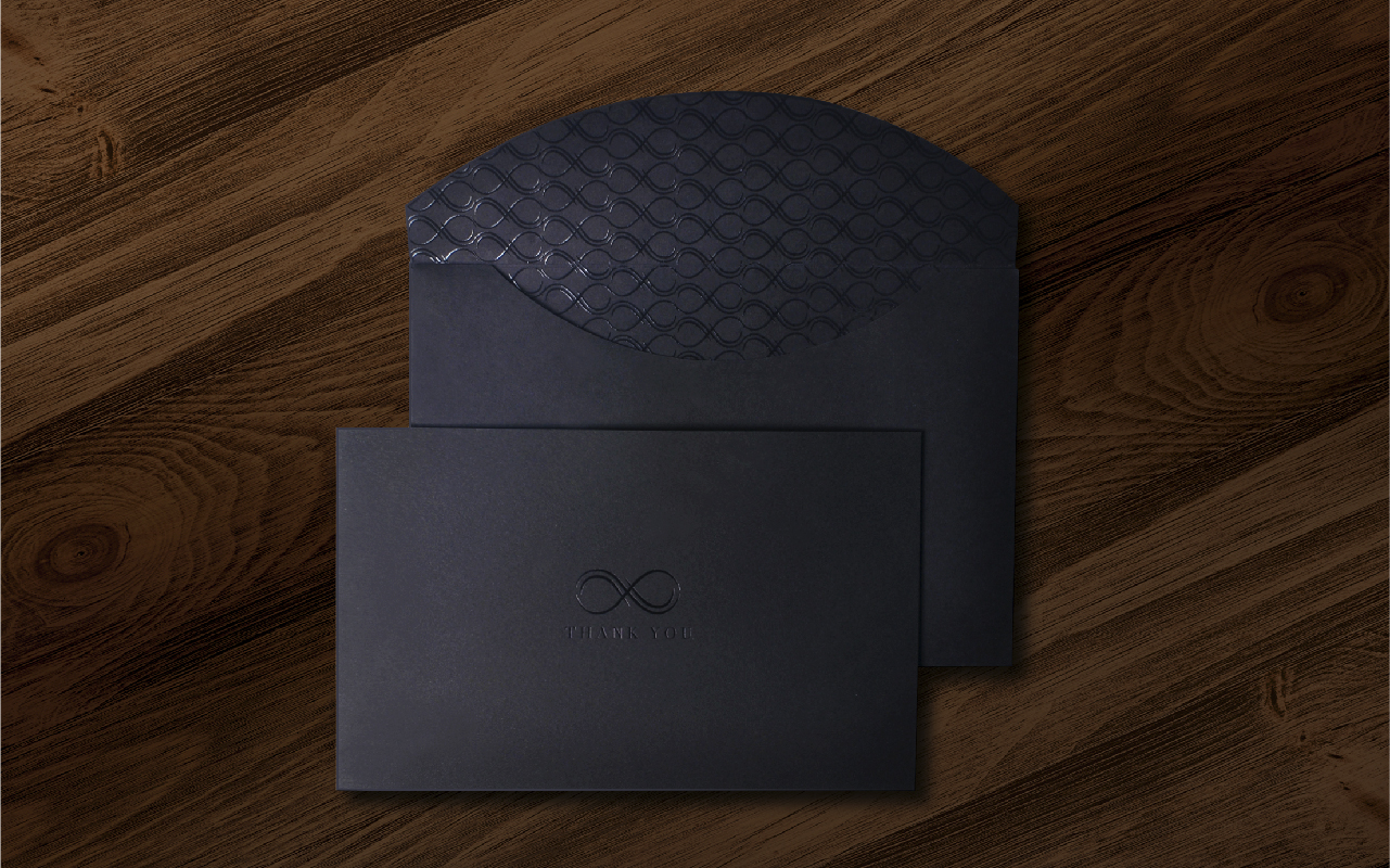 以俐落的infinity icon揭開序曲,緊扣無限的概念,說明國泰世華未來一年將給予頂級客戶的非凡禮遇,包含奧思禮、健檢、高爾夫、哩程等。排版上簡單大器,印刷上使用馬蒂斯紙,燙黑、局部亮等加工,讓客戶更感受尊榮。