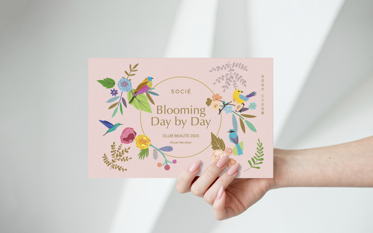 顧客收到此份文宣的時刻,正好準備迎接春天,大地回春、鳥語花香,予以符合時節的溫馨畫面,精準傳達來自施舒雅的幸福與喜悅之情。因為與會員的支持往來,能看到各種女性美麗的樣貌,也希望施舒雅的服務,讓會員的人生更加美麗。