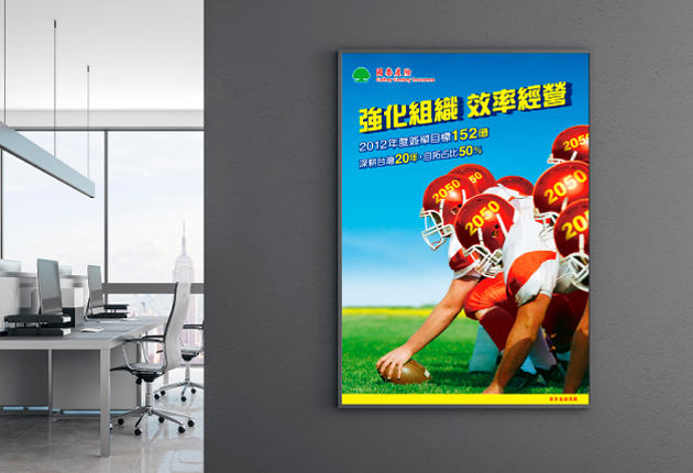 每年設定年度經營目標與主題,透過各式運動所需的努力與拚勁、振奮人心的熱血……;或是象徵團結凝聚、睿智與領導的畫面,設計成海報張貼於辦公室,時時鼓勵員工,為新的年度加滿油,朝目標前進。