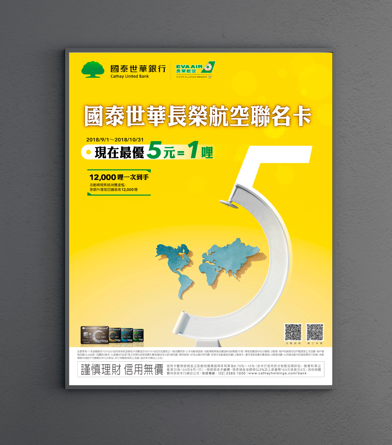 國泰世華 長榮航空聯名卡 5元1哩促刷廣告