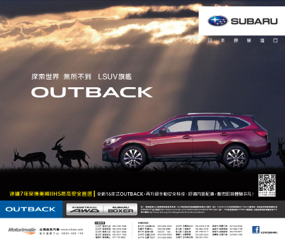 下右:屬於LSUV的SUBARU OUTBACK,代表的是更進階的人生視野,不只征服險惡路段,寬闊舒適的乘坐空間,帶你看和別人不一樣的人生風景,享受坐擁SUV最奢華的樂趣。"